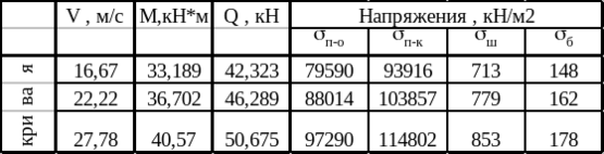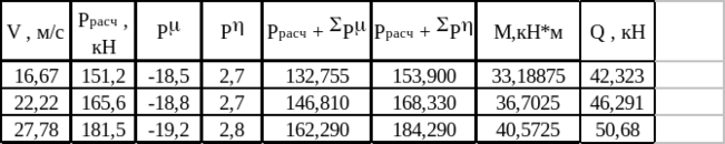 Таблица 1.6 – Определение изгибающих моментов и давлений на опору