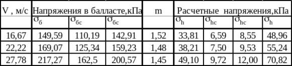 Таблица 1.10 – Расчет напряжений в элементах верхнего строения пути