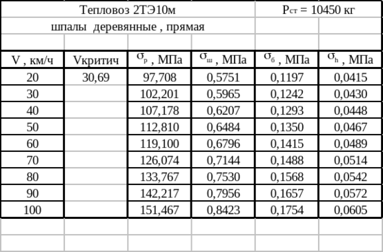 Расчет выполнен для локомотива 2ТЭ10м. Результаты расчета сведены в таблицу 1.3.