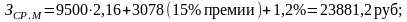 – премия (размер устанавливается в соответствии с Положением о премировании на предприятии);