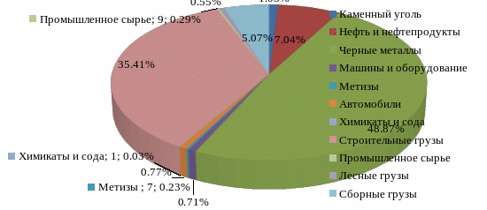 Годовая погрузка по станции Сибирцево составляет около 1463 тыс. тонн, представлена в виде структурной диаграммы на рисунке 4.1.
