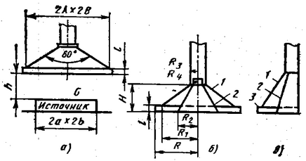 Отсосы (вытяжные зонты) следует располагать на оси (плоскости) симметрии источника на минимально возможной высоте l. Изложенная методика предназначена для расчета отсосов, улавливающих конвективные струи в пределах разгонного участка: компактная струя l £ 4r или l £ 4rэ; плоская струя l£4b; и для расчета отсосов, улавливающих приточные струи в пределах основного участка: компактная и плоская струи l³12r(rэ) или l³12b, где: rэ – эквивалентный по площади радиус прямоугольного источника, вычисляемый по формуле: