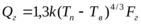 где: Fг и Fв – соответственно площади горизонтальных и вертикальных теплоотдающих поверхностей; k – коэффициент, который зависит от абсолютных значений и разности температур Тп и Тв.
