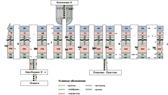 Диаграмма груженых вагонопотоков строится с целью определения густоты вагонопотоков на участке Бира – Хабаровск II. Разработка диаграммы производится на основании корреспонденции груженых вагонопотоков (табл. 2.1).