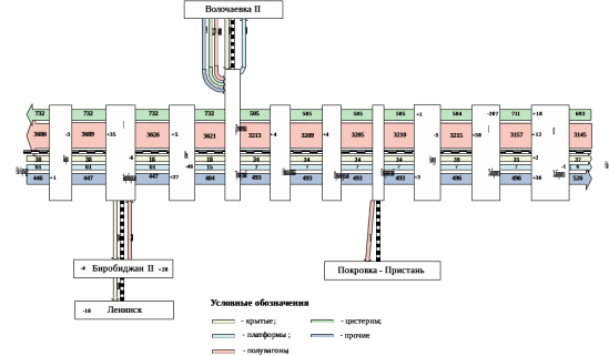 Действующий план формирования поездов в границах участка Бира – Хабаровск II
