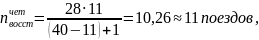 Значение средних интервалов между поездами в четном и нечетном назначениях определяются по формулам, мин:
