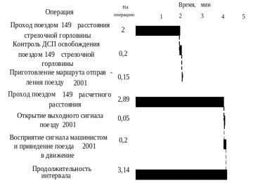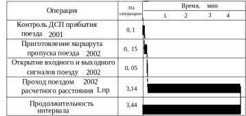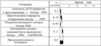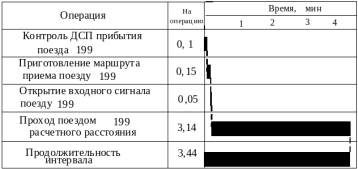 Исходя из этого технологического графика, интервал попутного отправления поездов принимается равным 4 минут.