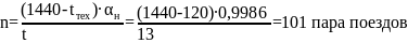 – размеры наличной и потребной пропускной и способности соответственно, пар поездов;