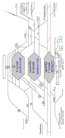 - сортировочно-отправочный парк: пути № 14, 15, 16, 17, 18, 19, 20.