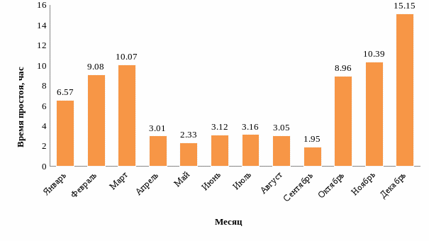 Рисунок 2.2. Динамика изменения среднего времени простоя транзитных вагонов без переработки за 2016 год