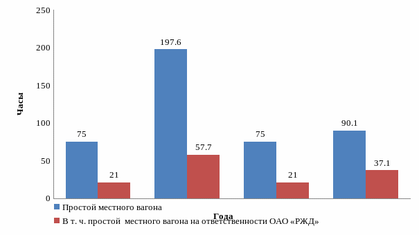 Простой местных вагонов в 2016 году по сравнению с 2015 годом уменьшился на 107,5 часа, в том числе на ответственности ОАО «РЖД» на 20,6 часа.