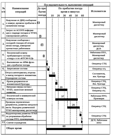 Рисунок 6.1. Технологический график обработки грузового поезда, прибывшего в расформирование
