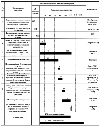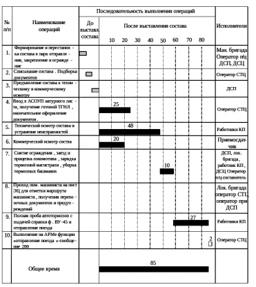Рисунок 6.3. Технологический график обработки грузового поезда своего формирования (до 15 вагонов)