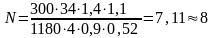 Зная, что в кабинете по охране труда на станции Владивосток используются светильники, в каждом из которых имеется 4 люминесцентные лампы мощностью 20 Вт, рассчитаем количество светильников, которое необходимо в помещении. Для этого выделим из формулы (9.5) показатель