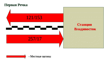 Рисунок 2.3. Схема среднесуточных вагонопотоков станции Владивосток