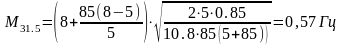 Критерий затухания М определяем для октавных полос со среднегеометрическими частотами 31,5; 63; 125; 250; 500; 1000; 2000; 4000; 8000 Гц. Рассчитываем критерий затухания М для частоты 31,5 Гц [7]
