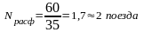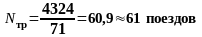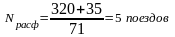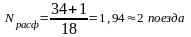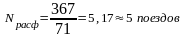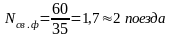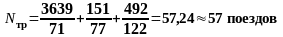 Число поездов, поступающих в расформирование, рассчитано с каждого направления по формуле, поездов: