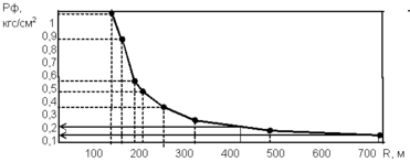 Определяем расстояния для избыточных давлений D Рф соответственно 0,1; 0,2; 0,3; 0,4; 0,5; 0,8; 1,0 кгс/см2: