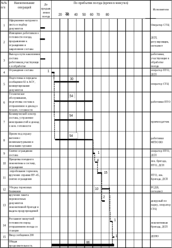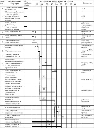 Технологический график обработки поезда поступающего в расформирование изображен на рисунке 4.5