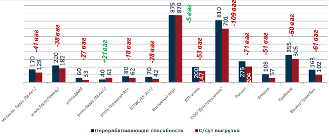 Таким образом, размер перерабатывающей способности сегодня не может быть ориентиром для согласования планов погрузки и установления норм выгрузки.