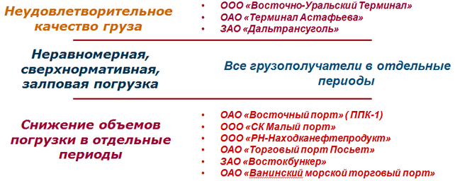 3. В цепочке перемещения грузопотока отсутствует взаимодействие портов с фрахтовыми компаниями и судовладельцами. В настоящее время этот вопрос является одним из наиболее сложных. Фрахтованием судов ни ОАО «РЖД» ни порты не занимаются. Эта деятельность осуществляется самими грузоотправителями, представителями зарубежных покупателей или многочисленные фрахтовые компании. В результате срыв фрахта влечет за собой накопление груза в портах и простои вагонов, а организаторы фрахта не несут соразмерной с последствиями ответственности.