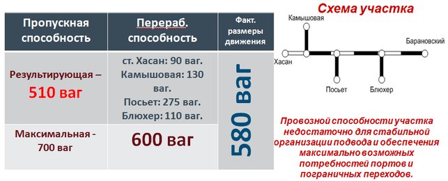 Провозной способности участка недостаточно для стабильной организации подвода и обеспечения максимально возможных потребностей портов и пограничных переходов.