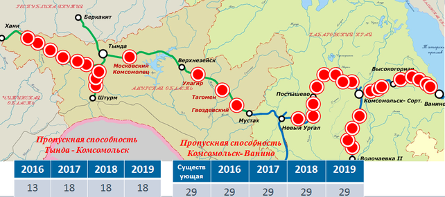 Реконструкция участка Комсомольск – Ванино ведется с 2008 года. До 2019 г. запланировать строительство 3-х разъездов, 2 перегонов вторых путей, 1 двухпутной вставки, реконструкция 9 станций, в том числе Комсомольск – Сортировочный, и Ванино.