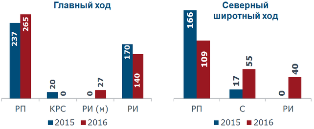 снижение объемов реконструкции пути на 56,65 км (2016 год – 109,2 км, 2015 год – 165,85 км);