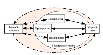 Доставка грузов железнодорожным транспортом до морского порта осуществляется в системе «толкающей» логистики, то есть доставка груза в порт по мере поступления вагонов на станцию. Транспортная же система «терминал – станция – порт» работает в «тянущем» режиме, то есть доставка грузов по запросам порта.