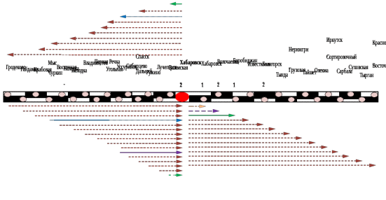 Рис. 1.1. План формирования грузовых поездов из/на станцию Хабаровск – 2