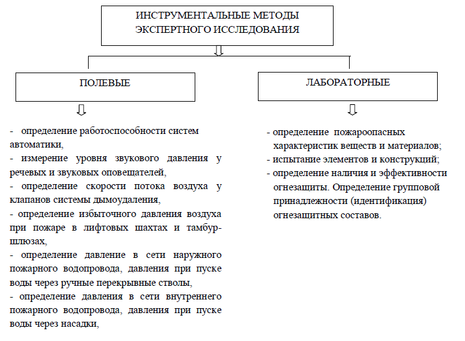 Оценку работоспособности и эффективности систем противопожарной защиты, определение различных пожароопасных характеристик веществ и материалов, исследование огнезащитных покрытий и составов невозможно провести без использования специальных инструментальных методов и технических средств. Классификация данных методов приведена ниже на рисунке 5.1