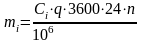 , каждого из веществ сбрасываемых в водоем, т/год, по формуле (1)[9]: