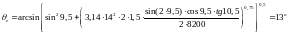 Оптимальный угол наклона прожектора к горизонтальной плоскости (см. рисунок), определяется по формуле, град.: