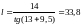 Минимальная высота установки прожекторов над освещаемой поверхностью, во избежание их слепящего действия вычисляется по формуле, м.: