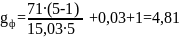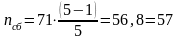 mф - среднее число вагонов, включаемых в формируемый состав с установленной весовой нормой или длиной состава (mф=71вагонов).
