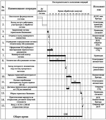 Порядок выполнения операций и нормы времени на обработку четного поезда своего формирования представлен на рисунке 4.3.
