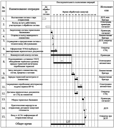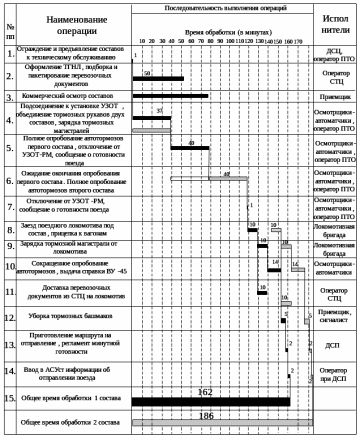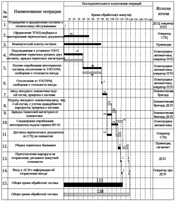 Порядок выполнения операций и нормы времени на обработку нечетного поезда своего формирования представлен на рисунке 4.4.