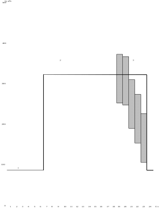 Принимается двухступенчатый график подачи воды от НС - 2. С 23 до 6 часов работает насос первой ступени, с 6 до 23 часов работает насос второй ступени. Принимается полив в течение 5 часов: с 18 до 23. График подачи и водопотребления приведен на рисунке 2.1.