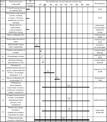 Продолжительность осмотра на обработку поезда рассчитывается по формуле 4.2: