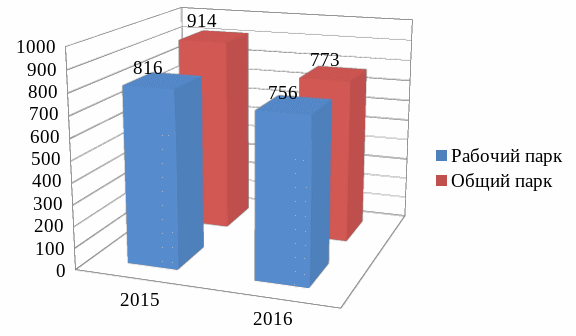 Рабочий и общий парк вагонов на 2015 и 2016 также представлен на рисунке.2.2