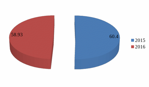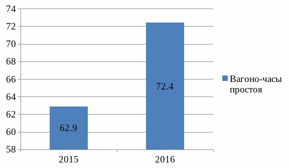 Из диаграммы видно, что на 2016 год вагоно-часы простоя местных вагонов увеличились в 1,15 раз.