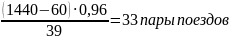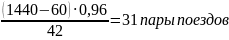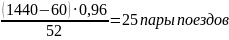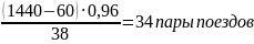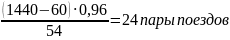 = 24–1 ∙ 6 – (3,72 –1) ∙ 2 = 10 пар поездов.