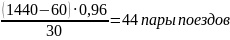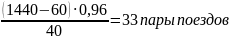 = 24–1 ∙ 6 – (3,72 –1) ∙ 4 = 8 пар поездов.