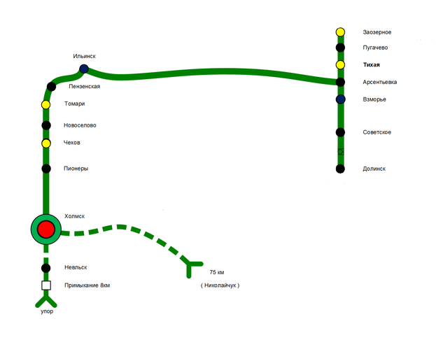 Рис. 1.1 Схема участка Шахта – Сахалинская – Долинск – Заозерное.