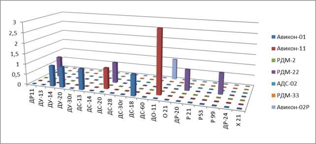 | Авикон-02Р | 3 | - | - | - | - | - | - | - | - | - | - | - | - | 1 | - | - | - | - | 2 | - | - | |