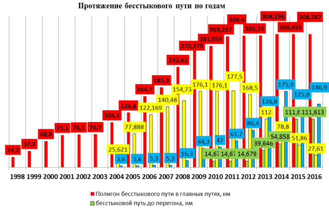 Рисунок 1.9 – Протяжение бесстыкового пути по годам
