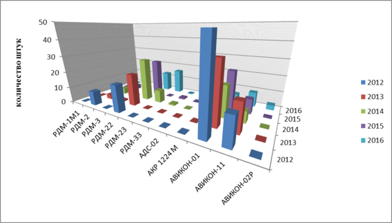 | Дефектоскопы | Количество ОДР по годам, шт. | ||||
