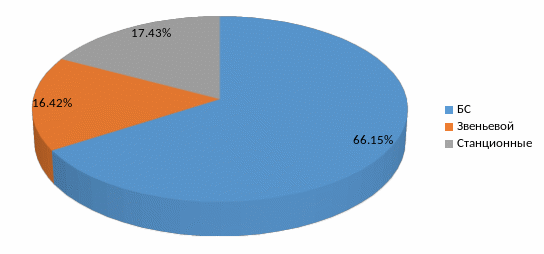На рисунке 1.2 показана диаграмма наличия бесстыкового пути, звеньевого пути и станционных путей по дистанции.