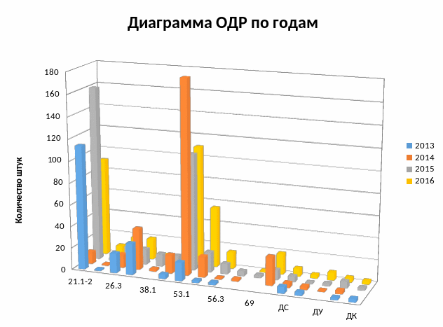 Количество ОДР выявленных в период с 2013 по 2016 гг. представлено в таблице 2.2 и в рисунке 2.1: