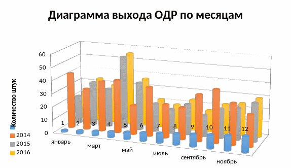 Количество ОДР выявленных в период с 2014 по 2016 годы представлено в таблице 2.5 и на рисунке 2.3.
